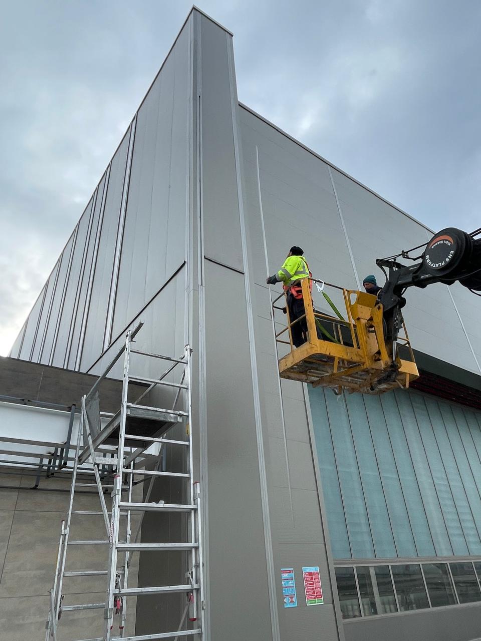 Projede çatıda yüksek hadeveli standing seam panel kıllanılmıştır. Cephe de ise sandwich panel uygulaması yapılmıştır.